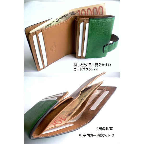 PELLE BORSA ペレボルサ 折り財布 二つ折り レザー ウォレット 7202 Very Goods アイボリー/グリーン