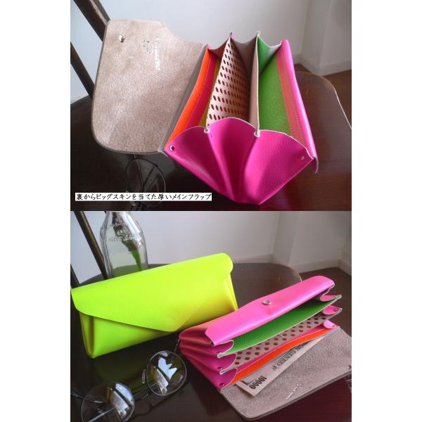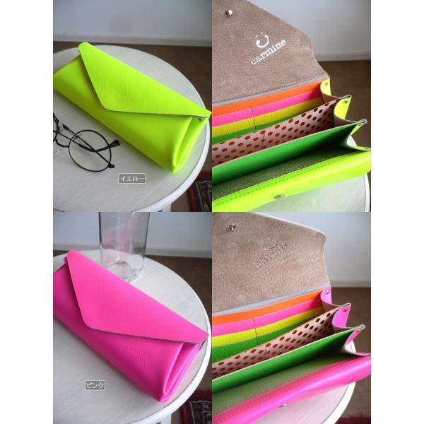 ノベルティ carmine カーマイン ビビッド ネオン レザー ロングウォレット 長財布 VLW イエロー/ピンク