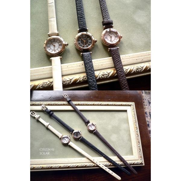 ノベルティ CITIZEN シチズン Kii キー レザーバンド ソーラー アンティークデザイン 腕時計 EG7082 EG7083 アイボリー/ブラウン/ブラック/ピンクゴールドル/