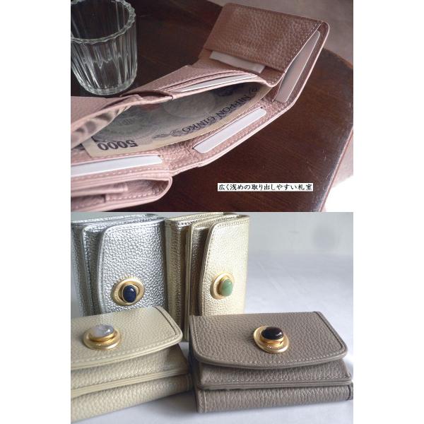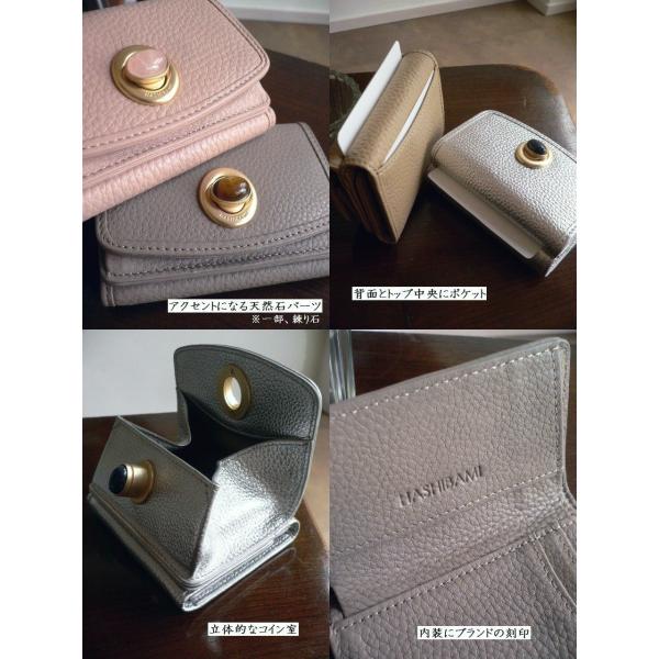 HASHIBAMI ハシバミ 三つ折り 財布 ジェムストーン ミニウォレット HA-2008-729 HA-2212-816 ホワイト/ピンク/カーキ/グレー/シルバー/ゴールド