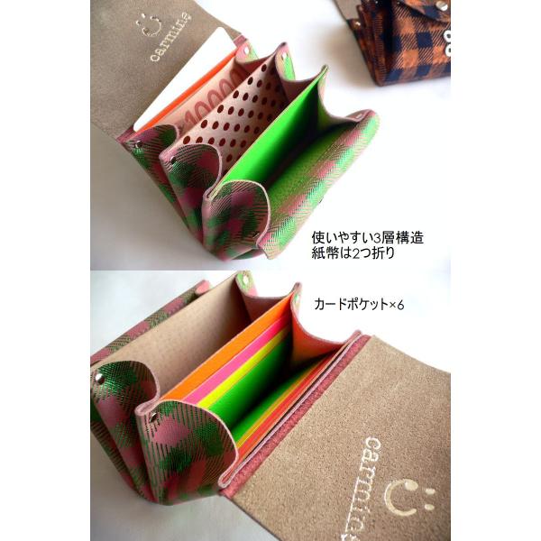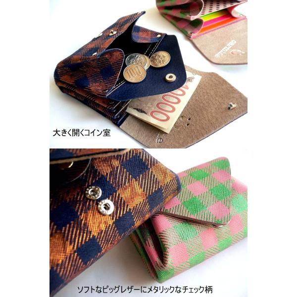 carmine カーマイン ミニウォレット チェコ チェック 折り財布 MWCH メタリック ピンク グリーン ネイビー ブロンズ