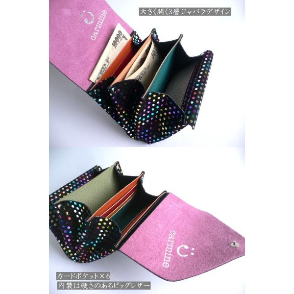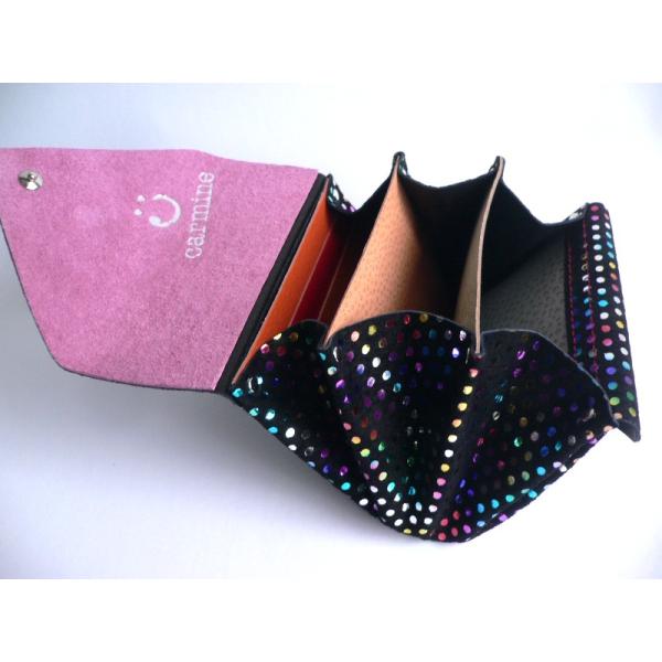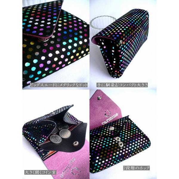 carmine カーマイン 水玉 プチドットメタリック 箔押し スエード レザー ミニウォレット 折り財布 MWPD ブラック