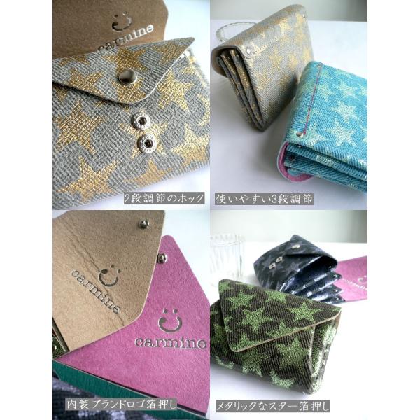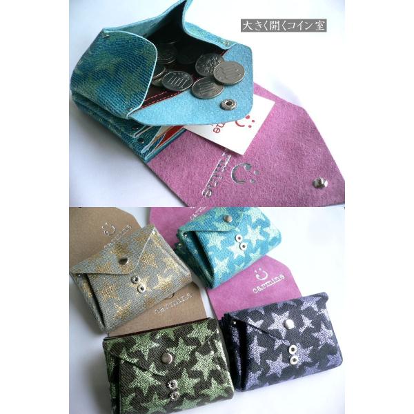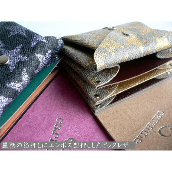carmine カーマイン レザー ミニウォレット 星柄 スター 折り財布 MWSTR ゴールド/カーキ/ブルー/パープル