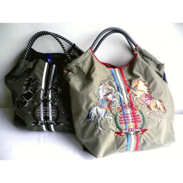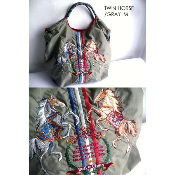 正規品 BALL&CHAIN ボールアンドチェーン ボールアンドチェーン バッグ エコバッグ Mサイズ TWIN HORSE 紋章 エンブレム ホース 馬 ウマ グレー
