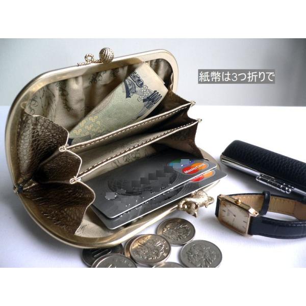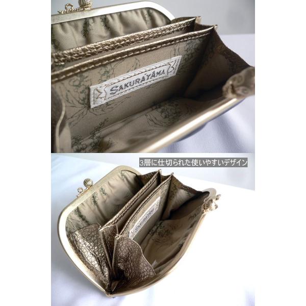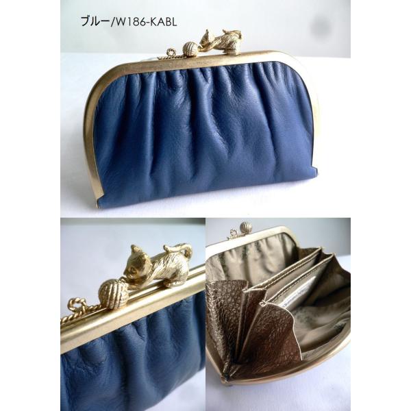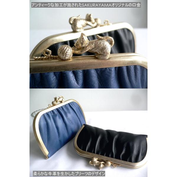 SAKURAYAMA サクラヤマ 折り財布 ミドル 牛革 レザー がま口 W186 猫と毛糸玉のがまぐち ネコ ねこ ブルー ブラック ブラウン