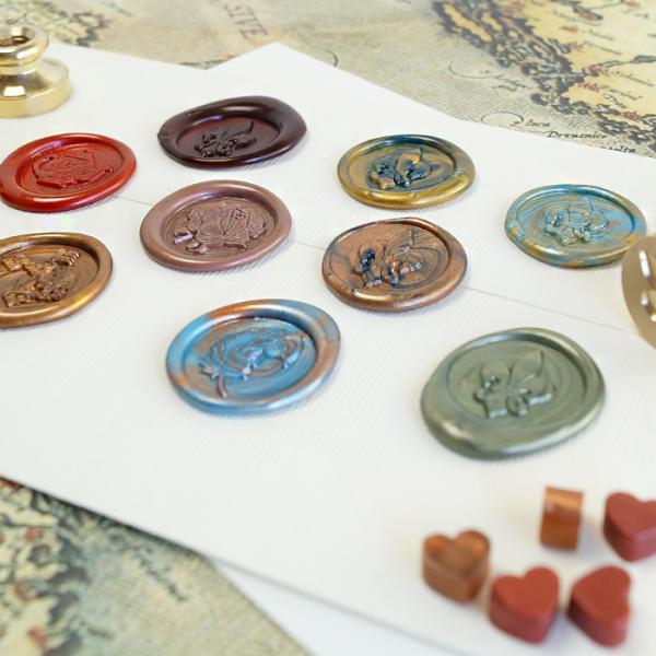 ハート型シーリングワックス。単色はもちろん、他の色とミックス調色して色でも楽しめるワックスを少量ずつパッケージング。