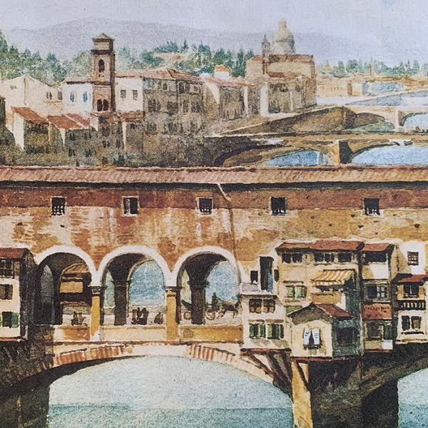 イタリア・フィレンツェ、アルノ川に架かる「ヴェッキオ橋」のアートポスター。アントニエッタ・ブランディスの作品。ヴェッキオ橋はフィレンツェ最古の橋とも言われています。