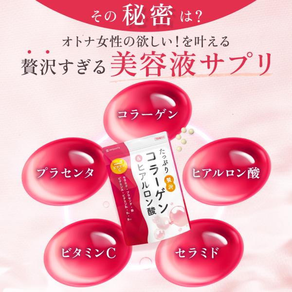 コラーゲン サプリ たっぷり贅沢コラーゲン&ヒアルロン酸 1000mg/1日 ビタミンC セラミド 鉄 ビタミンA エクソソーム含有プラセンタ ポイント利用 爆買