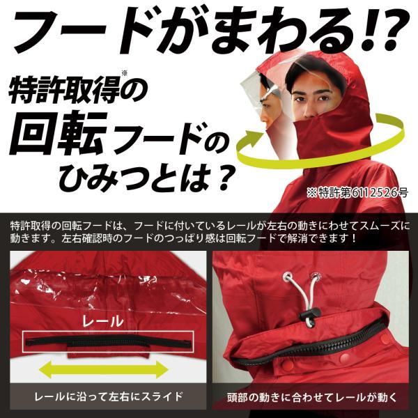 特許取得 回転フード 視界良好 男女兼用 上下 レインスーツ 爆買