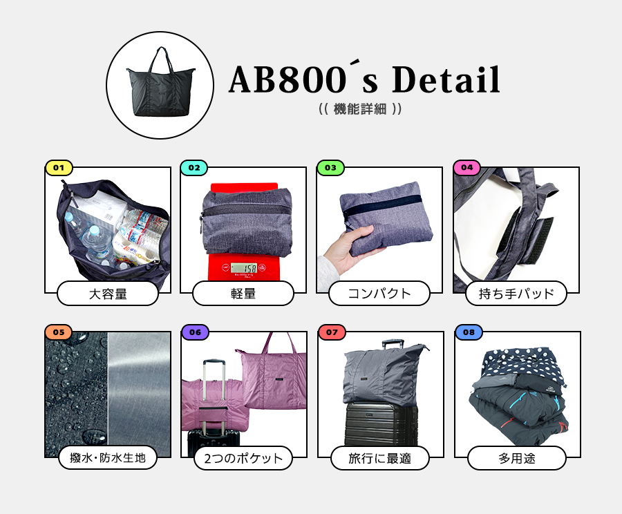 キャリーオンバッグ エコバッグ セット 防水 撥水 折り畳み 大容量 軽量 set-800_700 AB800 ae700 メンズ レディース ボストンバッグ コンパクト アエトニクス