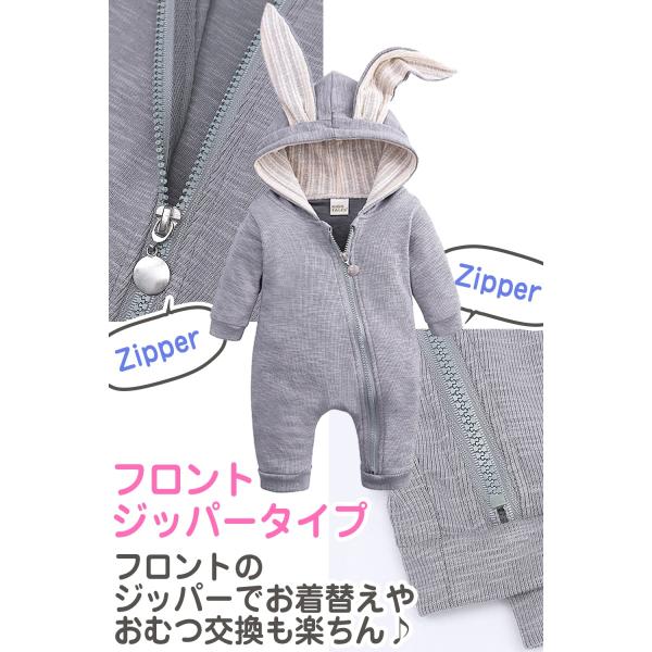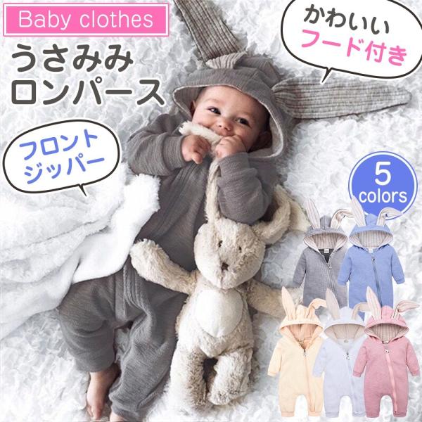 ベビー服 ロンパース ベビー 長袖 かわいい うさぎ 前開き おしゃれ うさみみ カバーオール 赤ちゃん服 男の子 女の子