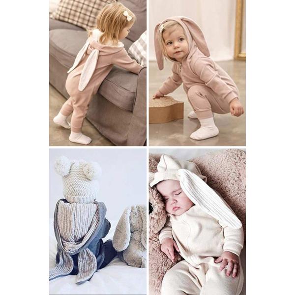 うさぎの耳がついたとっても可愛いベビーロンパース。