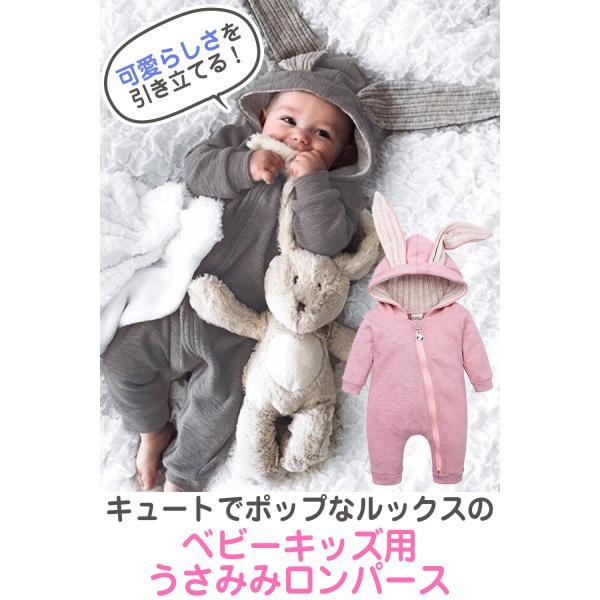 キュートでポップなルックスのベビーキッズ用うさみみロンパース。