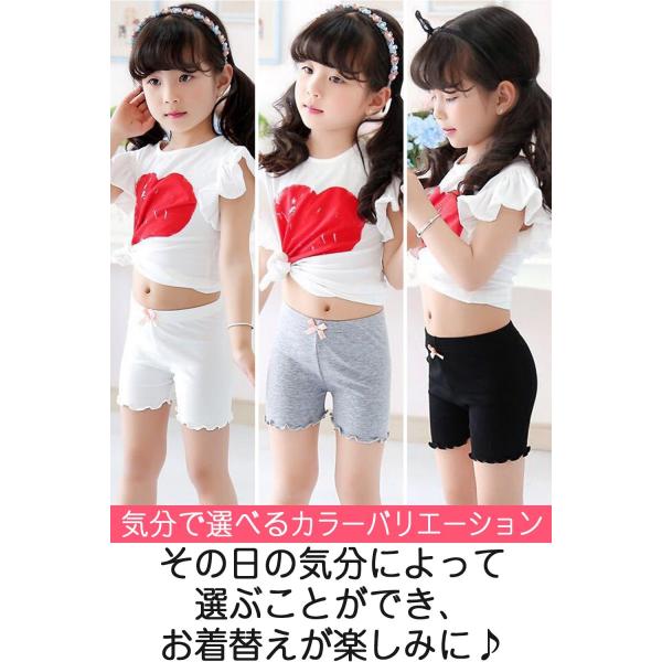 オーバーパンツ アンダーパンツ 女児 キッズ インナーパンツ ガールズ 下着のチラ見え防止 ペチパンツ スパッツ 3分丈 リボン付き 3枚セット