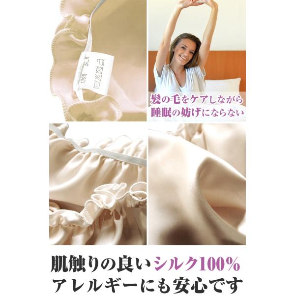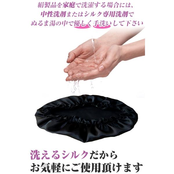 シルク100%で髪にうるおいを与えるナイトキャップです。