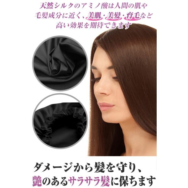 ナイトキャップ 髪 つやつや さらさら シルク100%