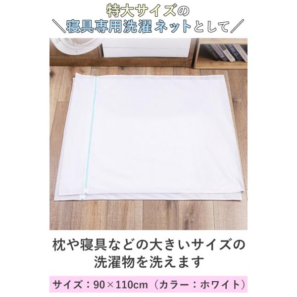 特大サイズの寝具専用洗濯ネットとして枕や寝具などの大きいサイズの洗濯物を洗えます。