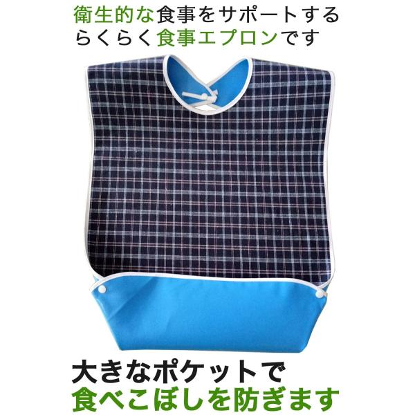 介護用エプロン エプロン 介護 食事用 介護エプロン 食事用エプロン 食べこぼし 汚れ 防止 ブルー