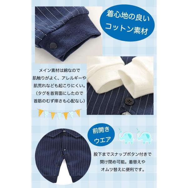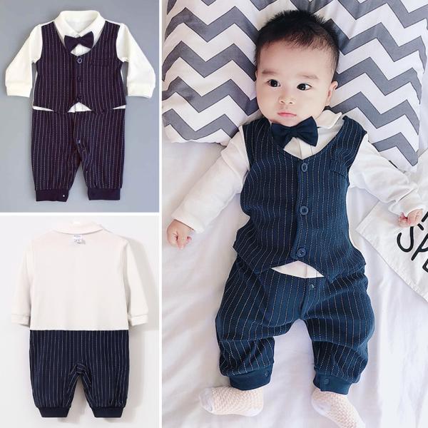 フォーマルロンパース かわいい ロンパース ベビー 男の子 長袖 着ぐるみ フォーマル 服 おしゃれ 肌着 赤ちゃん 記念日 結婚式 卒業式 卒園式 ストライプ 紺色