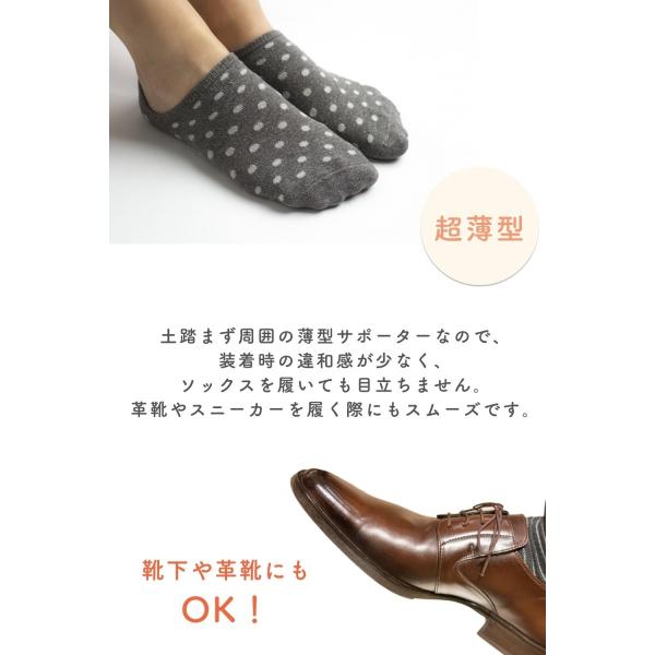 【快適フィット】土踏まず周囲の薄型サポーターなので、装着時の違和感が少なく、ソックスを履いても目立ちません。