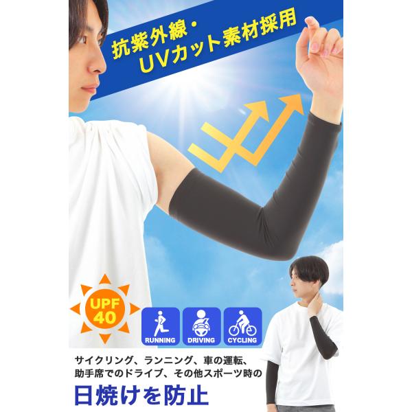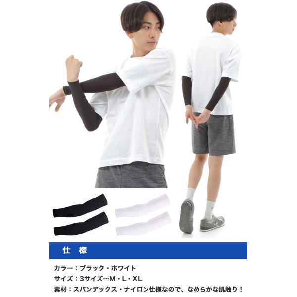 アームカバー メンズ スポーツ UVカット 2枚1セット ロゴ無し 無地 自転車 サイクリング アウトドア ゴルフ 日焼け防止 冷感 黒 ブラック 白 ホワイト