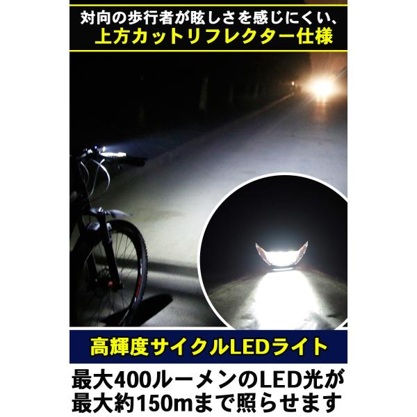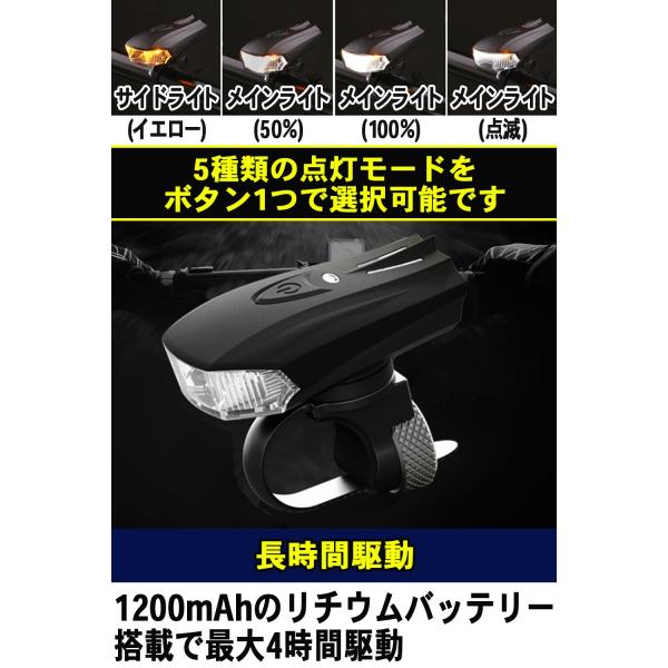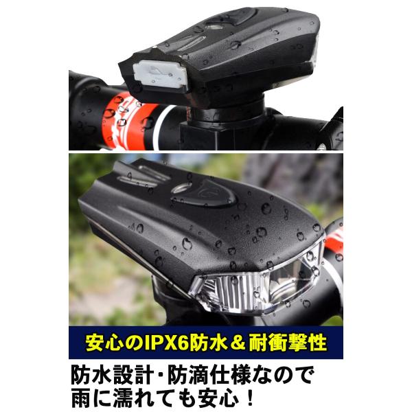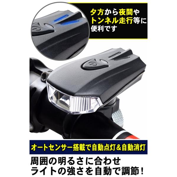 自転車 ライト LED USB充電 防水 ヘッドライト 自転車用ライト 自動点灯 明るい 400LM 1200mAh