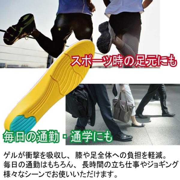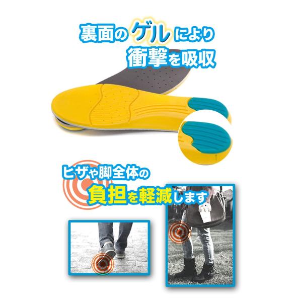 厚みのある衝撃吸収クッションインソールとして、くつの中敷きとしてセットし、ひざやかかとを含む脚全体の衝撃吸収、衝撃緩和にご利用ください.