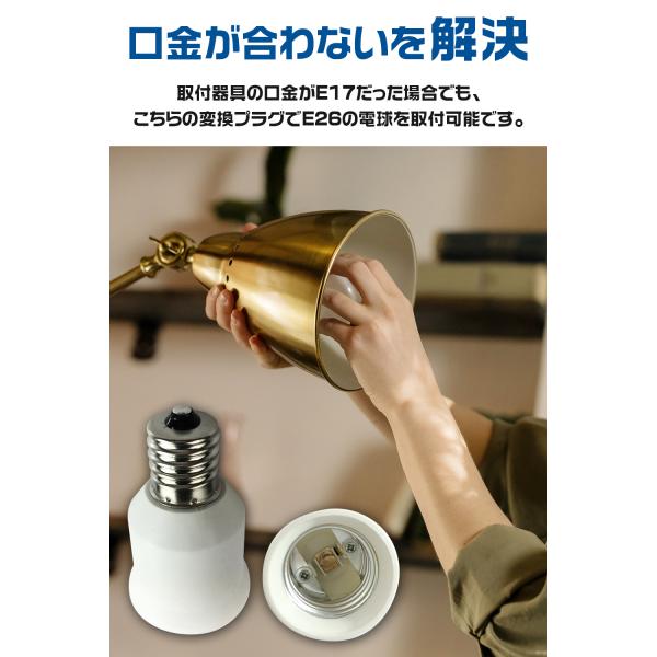 取付器具の口金がE17だった場合でも、こちらの変換プラグでE26の電球を取付可能です。