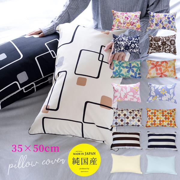 枕カバー 選べる カバー ピロケース 35×50 日本製 おしゃれ 綿100% 無地 ストライプ ドット フラワー まくらカバー