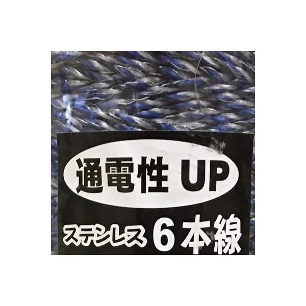 個人宅OK 電気柵線 ロープ 電気柵 コード シンセイ 強力 ヨリ線 ステンレス6本線 3色(青・白・白) 1000m 1巻 ボビン巻 柵線 ポリワイヤー 電柵