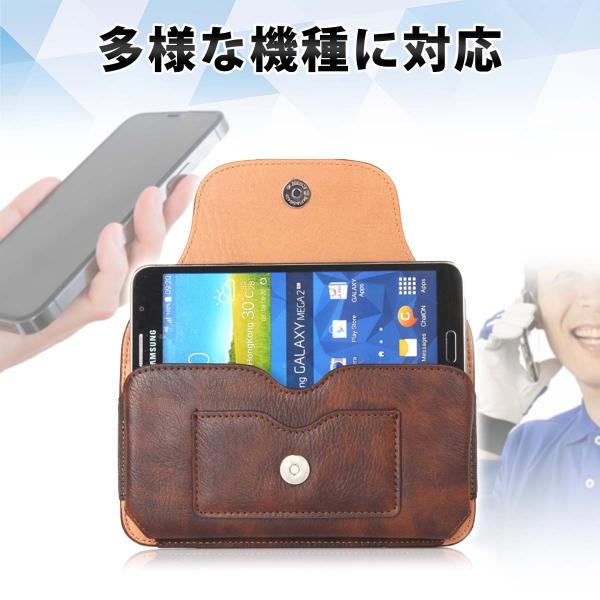 高品質のPUレザー は、本革のような質感、色合いでとても丈夫。 マグネットボタン開閉タイプで、常時スマホを手放せないビジネスマン、外回りや営業などで車に乗る時もかさばらず、すぐ取り出せる。 スーツや上着に隠れるので、見た目もスマート。 手前のカード入れには、いつも使っているカードが入れられるのでとっても便利。 仕事やお出かけに必携のベルトポーチ。