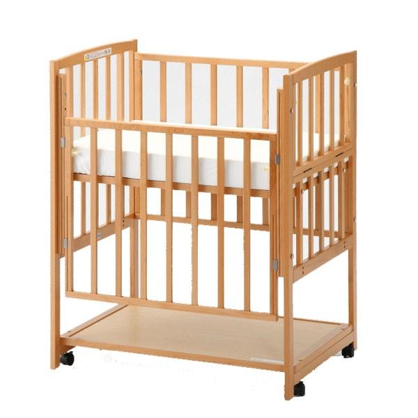 収納棚・4輪キャスタ付きハイタイプベビーベッド。