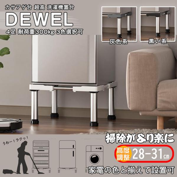 かさ上げ台 伸縮式 洗濯機高度調整 加湿器用 乾燥機 冷蔵庫 置き台 4足 超高サイズ 高さ28-31cm 3色 幅43-69cm 耐荷重300kg DEWEL 高さ調整 騒音対策 異音軽減