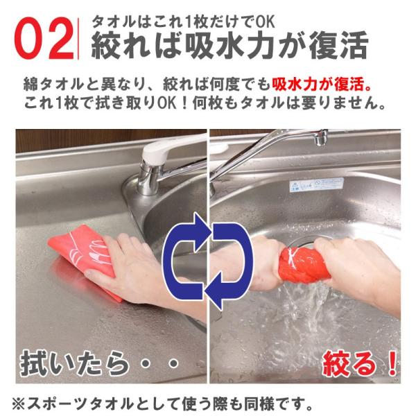 目に見えない60ミクロンの微細な気孔が、綿タオルとは比較にならない抜群の吸水力を発揮。