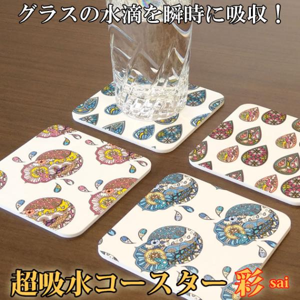 アイオン 超吸水コースター 彩 9X9cm 全4種 3枚以上購入&メール便配送で送料無料