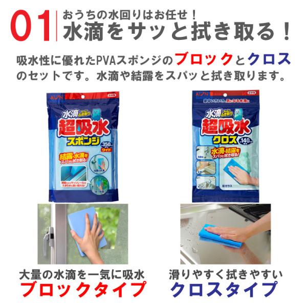 メーカー公式 アイオン 超吸水スポンジクロス+超吸水スポンジブロック350mlワイドセット 水滴 結露 カビ予防 窓 お風呂 洗面台 メール便配送で送料無料