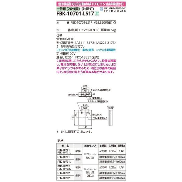 (表示パネル付・送料無料) C級天壁直付片面誘導灯 TOSHIBA(東芝ライテック) FBK-10701-LS17 + ET-10702 (FBK10701LS17+ET10702)