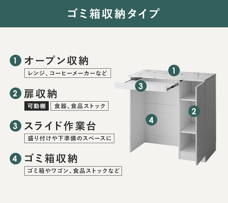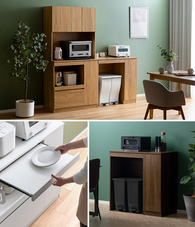 キッチンボード 食器棚 ロータイプ ゴミ箱上ラック slink610s
