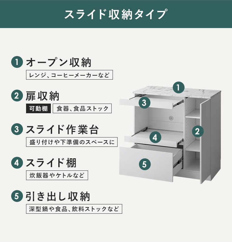 【耐荷重】天板/約30kg、スライド棚/約5kg、可動棚/約5kg