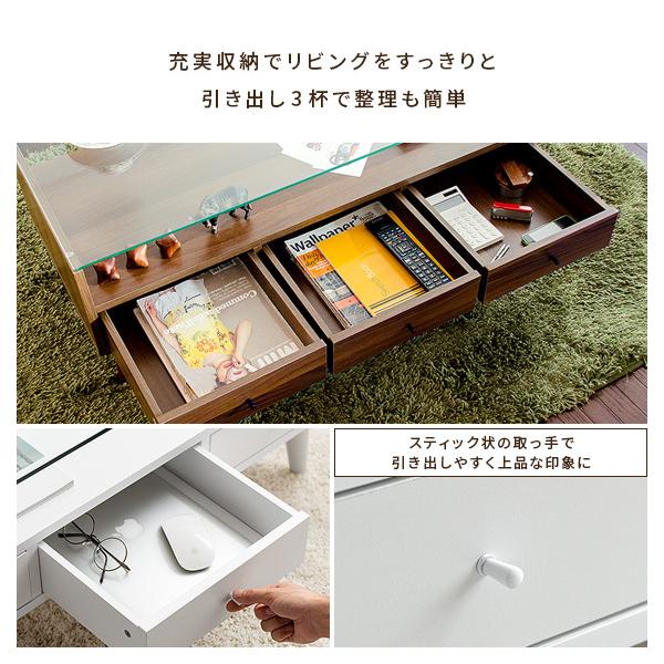 テーブル ローテーブル リビングテーブル おしゃれ センターテーブル ガラステーブル 収納付き 引き出し 北欧 モダン 木製 白 ホワイト ブラウン