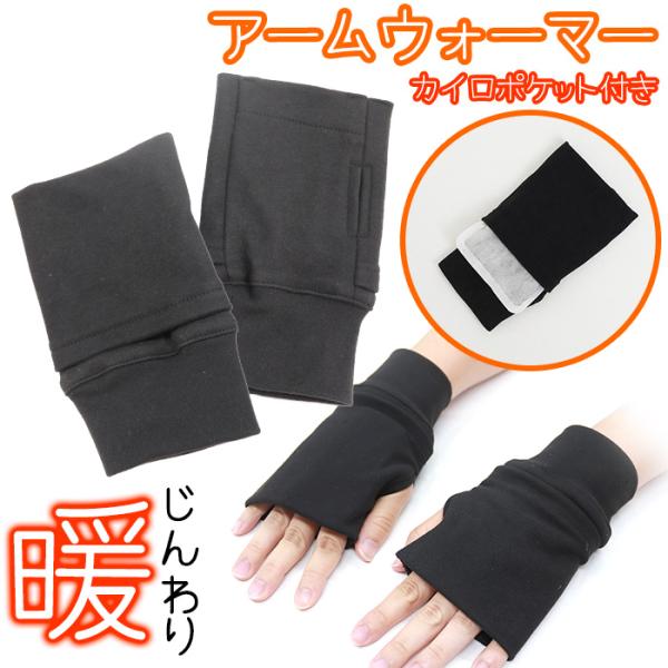 アームウォーマー 冬用 使い捨てカイロポケット付き 指なし手袋 アームカバー#141480