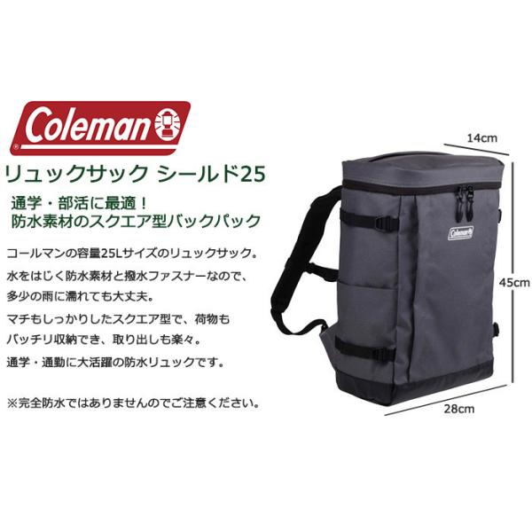 コールマン シールド25 スクエア型リュックサック 防水 リュック 通学 高校生 中学生
