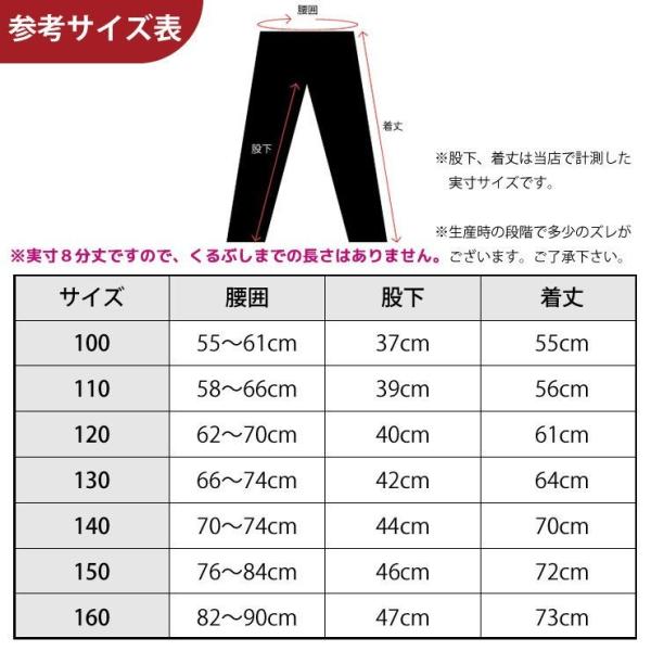 実寸8〜9分丈の黒無地綿混子供スパッツ レギンス