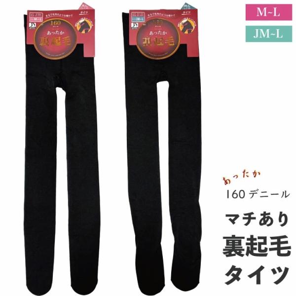 (メール便対応・・2点まで) マチ付き 裏起毛 160デニール レディース タイ ツM-L JM-L 婦人 あったか あたたか