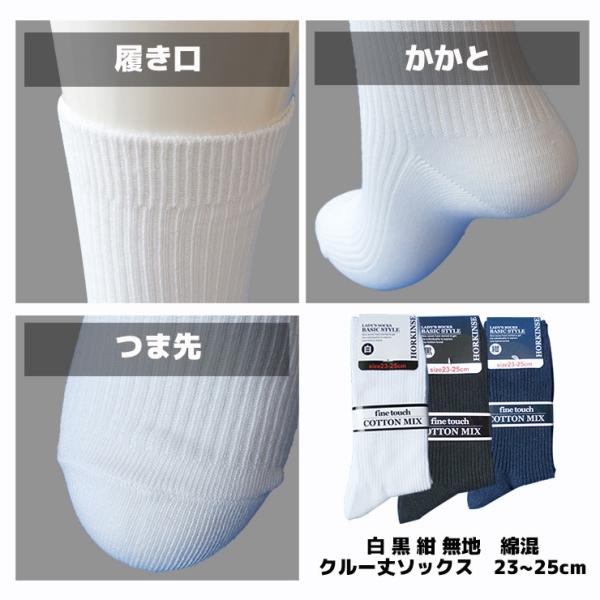 (メール便対応・・5足まで) 白/黒/紺 23-25cm 18cm丈 クルー丈ソックス スクールソックス レディース