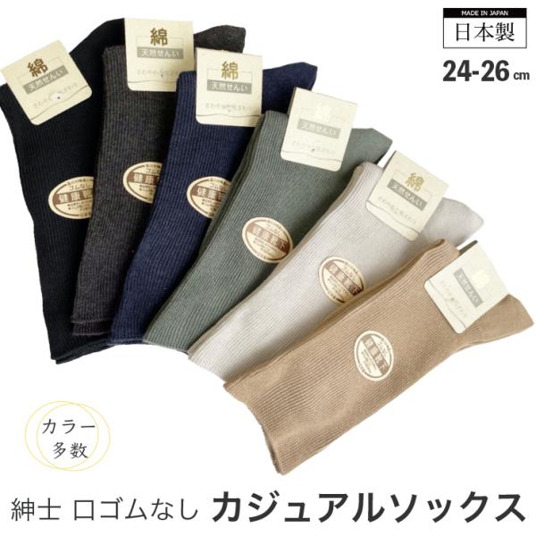 (メール便対応・・5足まで) 紳士 日本製 口ゴムなし ソックス 綿混 靴下 24-26cm メンズ 締め付けない ゴムなし さわやか
