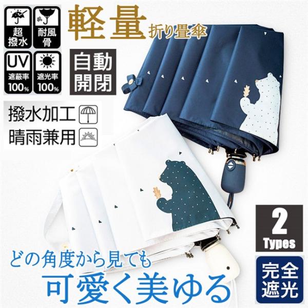 最強配送 15倍ポイントあり 日傘 レディース くま柄 完全遮光 折りたたみ傘 晴雨兼用 自動開閉 UVカット 軽量 日傘 紫外線対策 耐風傘 雨傘 かさ 通学旅行