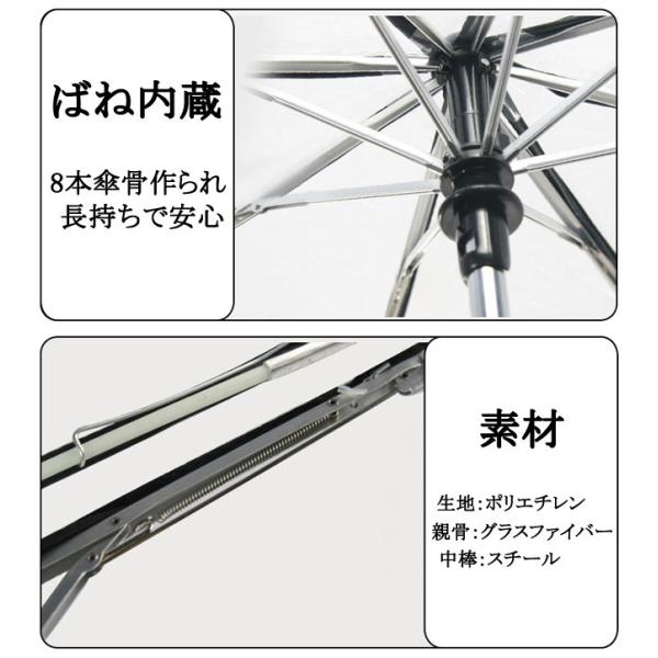 ★持ち運びやすい:ワンタッチボタンで一秒で開閉できるので便利で安全です。ガラス繊維&スチール製により軽くて持ちやすく、一般的な傘と同じ八本骨で耐久性も十分です。