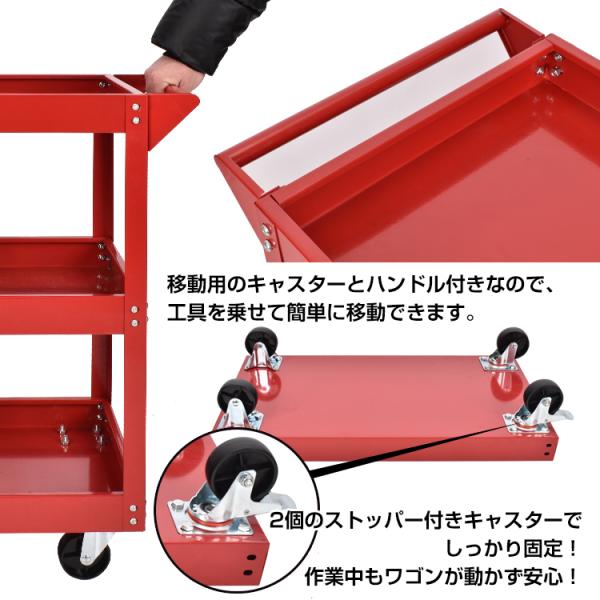 ツールワゴン 3段 ツールカート 工具カート 工具箱 工具ケース 工具ワゴン DIY ツールボックス 工具入れ キャスター付 ワーキングカート 整理整頓 運搬 移動