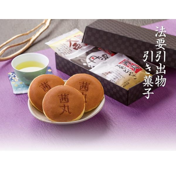 茜丸定番商品『茜丸五色どらやき』『大栗どらやき』『黒豆どらやき』に、『みるく饅頭』『チョコ饅頭』が入った、法要引出物・引き菓子用セット(6個入り専用箱)。